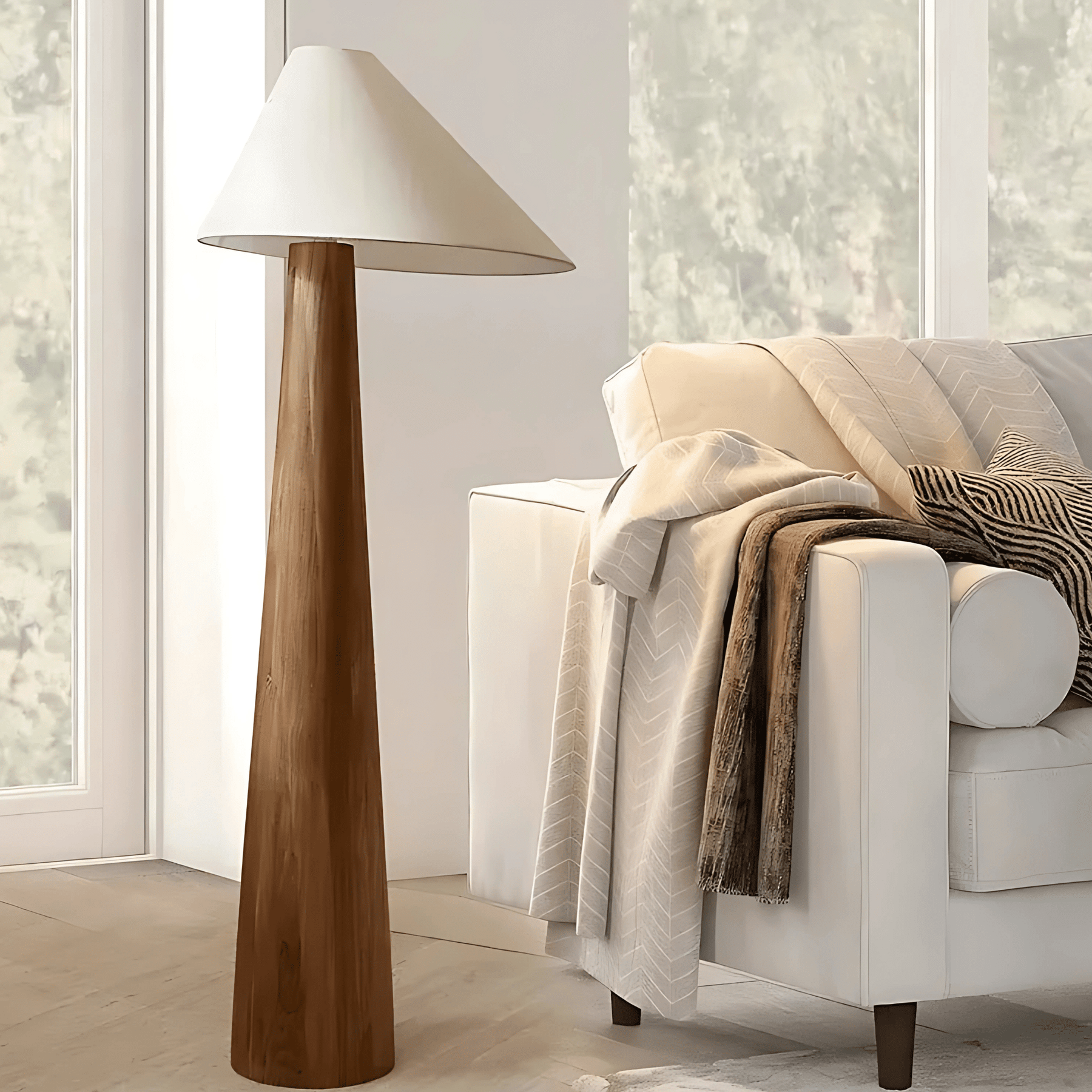 Lampada da terra Timber – eleganza naturale in legno e tessuto
